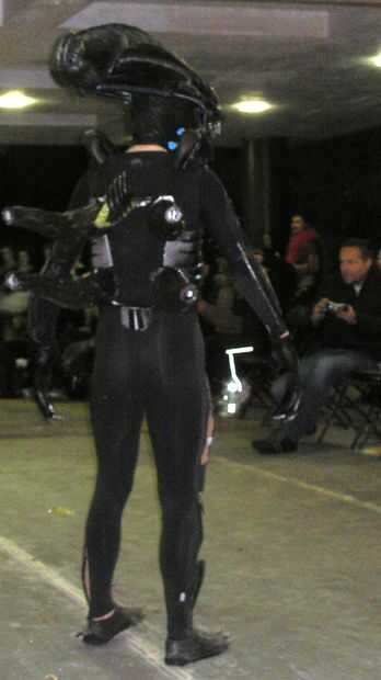 En la demanda era grande. Fue bastante móviles y cómodos en su mayor parte. Pude caminar normalmente, mis brazos y sentarse incluso puesto que no había mucho en la parte trasera. La cabeza era bastante equilibrada entre el frente y la parte de atrás y así no una cepa que allí. Visión fue sin duda limitada, pero no tanto como podría haber sido. El paño sobre el "cuello" era transparente y había un buen espacio para ver en la parte delantera entre los dientes. Añadí una cadena sobre la cola que cuelga de mi muñeca y cercana y dinámica. Mucha gente tomó fotos conmigo en los eventos a que fueron, y sin duda sin resolver a algunos pequeños. Hee hee.