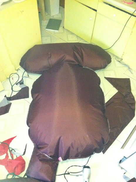Esta foto es después sujeté la cabeza y una pierna. Sopló con un secador de pelo para probar. Empecé con la primera mitad de la costura francesa hasta que todo se veía bien. Terminar la costura francesa en la final.