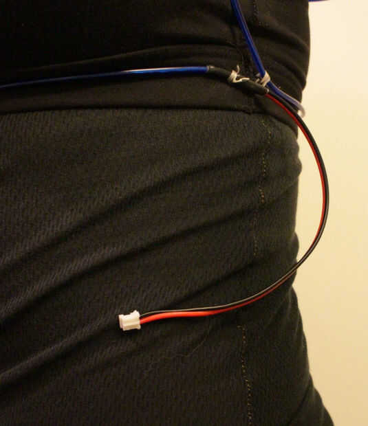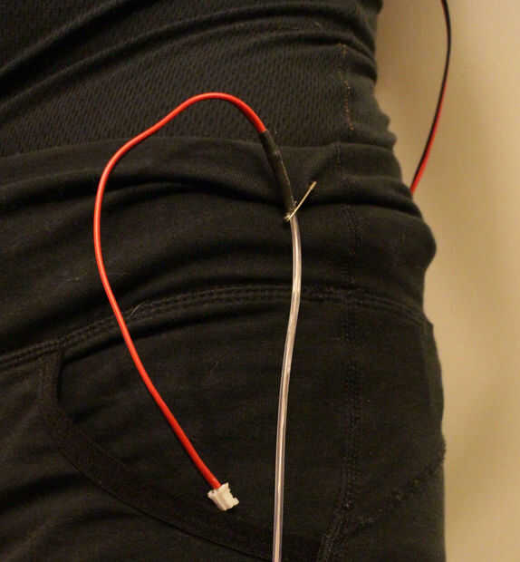 2. a partir de la basse del conector JST, conecte los hilos del cable EL a su artículo elegido de la ropa.