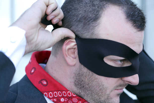Empezar a vestirse. Este traje es super facil como lo es toda la ropa que se encuentre fácilmente y usada. Tuve que modificar la forma de la máscara levemente para caber en la parte superior de mis oídos.