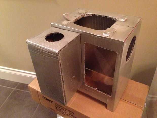 Creó la parte del torso. Cabezas de los niños son mucho más grandes que su cuello por lo que terminé haciendo estas aletas para colocarle el traje. Consigue plegar una vez que se vistió el traje. Medida hice la caja del detector de caramelo con un poco de pegamento caliente y corte. He dejado espacio para el teclado botón grande para ir al lado de él. Salí de la faceta inferior del depósito de dulces de una aleta con bisagras y agregó una cinta de velcro para que de vez en cuando pude descargar el caramelo en mi mochila durante la excursión. Tenga en cuenta que para los brazos que empezó con este aluminio tubería del conducto. Mi hija no podía moverse los brazos en absoluto así que había sustituido con algún material flexible plástico ligero más tarde. Cuerpo fue entonces aerosol pintado primero con una imprimación blanca/crema luego de plata. Por último, algunos de esos topes de semicírculo adhesivos ARMARIO poco compré que eres cocina armarios podrían tener sobre ellos para amortiguar el sonido cuando cerrarlas. Yo utilizó éstos para simular remaches/tornillos. Eran un toque agradable y mi hija me ayudó a poner en nos divertimos. De hecho, le encantaba decirle a la gente, "Estos son los pernos reales!".