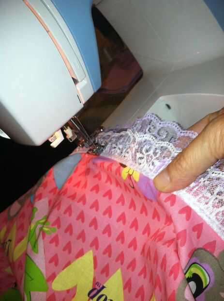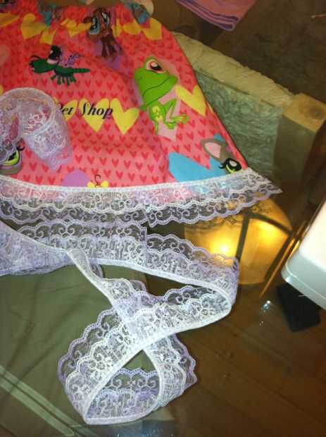 Tire el elástico por la cintura y coser el elástico. Agregar el adorno de encaje en el borde inferior y está acabado con tu falda!!! Así de fácil!