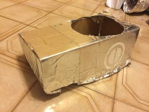 De todos modos, utilicé zapatillas de los niños para asegurarse de que las cajas serían lo suficientemente grandes como para cubrirlos. Terminé cortando un cartón para hacer mis propias cajas. El agujero en la parte superior es de 6" de diámetro para ventilación de la secadora. En el lado puede ver la decoración que hice de papel de contacto que luce como un tornillo. Dentro he creado algunos soportes de cartón para guardar las zapatillas hacia adentro borde de la caja.