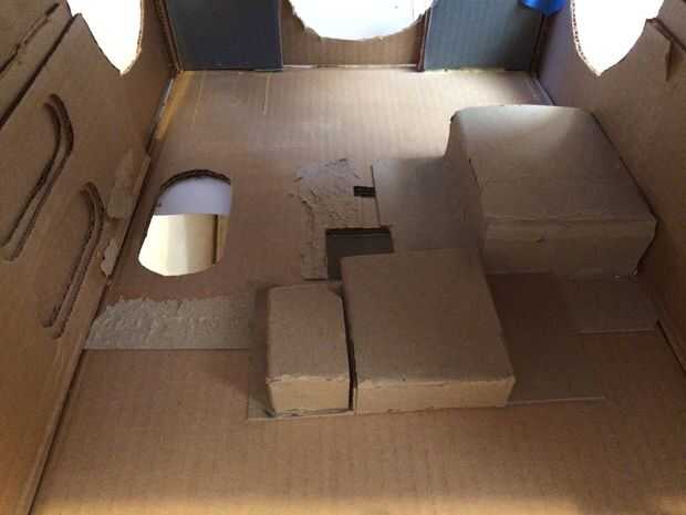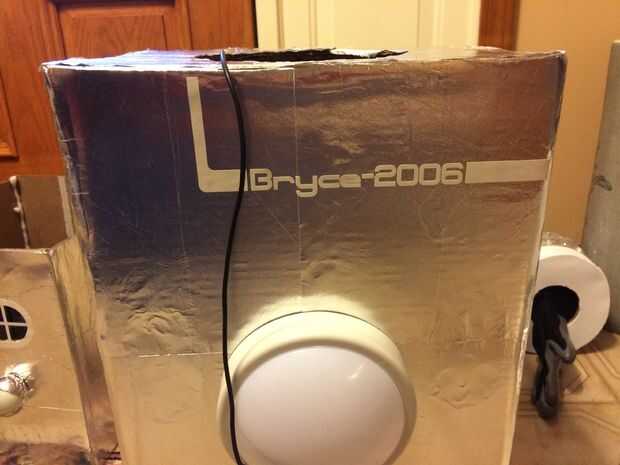 He creado otro bolsillo cartulina para sostener el Arduino y una batería de 9 voltios en la derecha del torso detrás de la luz.