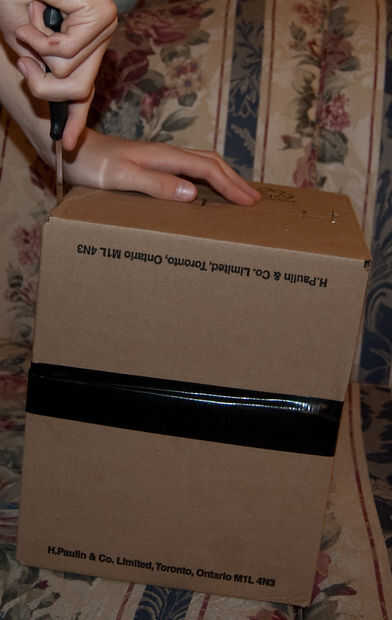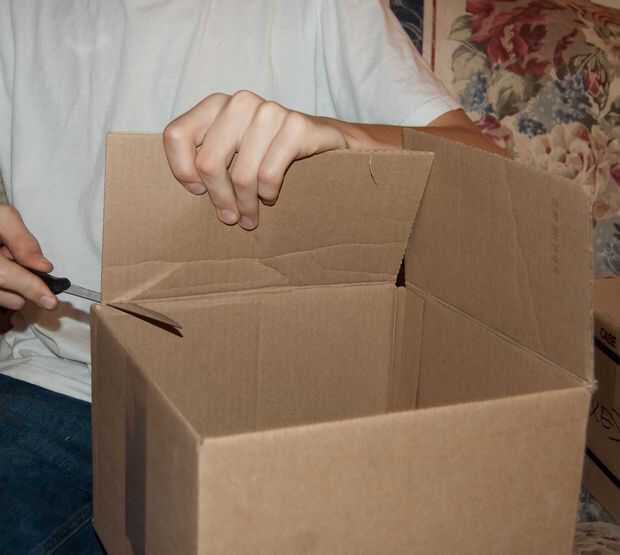 Como he mencionado en el paso 1 (materiales), hice la cabeza de mi traje de robot de dos pequeñas cajas. I cortar las aletas de una y coloque uno en el otro y el empalme de la cinta juntos. Después de eso, corte el fondo apagado, dejando dos "aletas" para ayudar a fijar la cabeza al cuerpo.