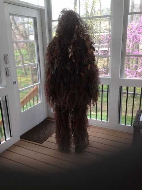 1. un traje Ghillie (cuestan alrededor de 50-80 dólares y puede ser casera o comprada)