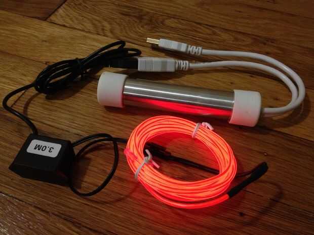 Asegúrese de que utilizar luces con una conexión USB. Solo ponen EL alambre y en cualquier lugar de la franja en la camiseta negra de manga larga y sellen con alguna cinta de embalaje transparente. Es mejor evitar cualquier junta o las esquinas vivas porque un montón de flexión puede dañar los alambres. También, tratar de hacer las conexiones en la parte posterior de la camisa por lo que puede estar oculto. Usted puede Agregar tanto alambre y tantos colores como usted desean, pero normalmente desea una batería por EL cable o la tira de LED. He intentado atar varias luces para una batería USB, pero reduce el brillo. Para hacer el disco trasero, simplemente Envuelva EL alambre en un círculo un par de veces.