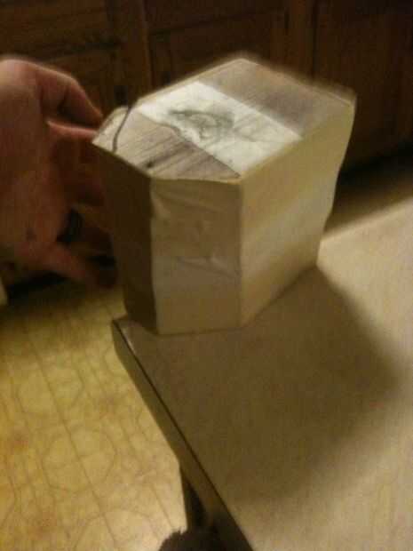 Luego pega los bloques juntos y envuelto en cinta y condujeron un clavo a través de ellos, de modo que fueran agradable y estable!