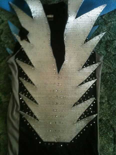 El siguiente fue la camisa que utilicé una vieja camiseta underarmor para la camisa negra, luego corté más cojín de yoga en un diseño me gusto y vi en uno de sus trajes.
