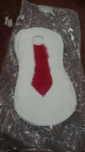 Paso 2: coser los dos pedazos juntos y luego cortar suficiente espacio para una cabeza, una lazo forma forma justo debajo de él y se está terminado la pintura!!!!