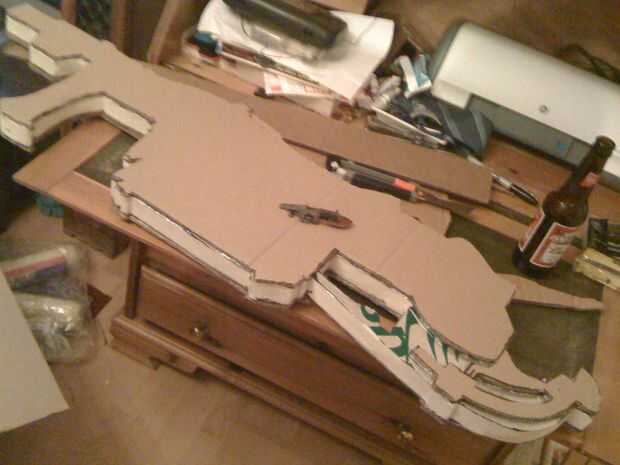 he usado unas 2 capas de cada lado de la espuma lo atascado hacia abajo usando la pistola de pegamento antes de empezar con el información levantado. Supongo que si sólo había utilizado cartulina habría sido cerca de 10 rebanadas gruesas.