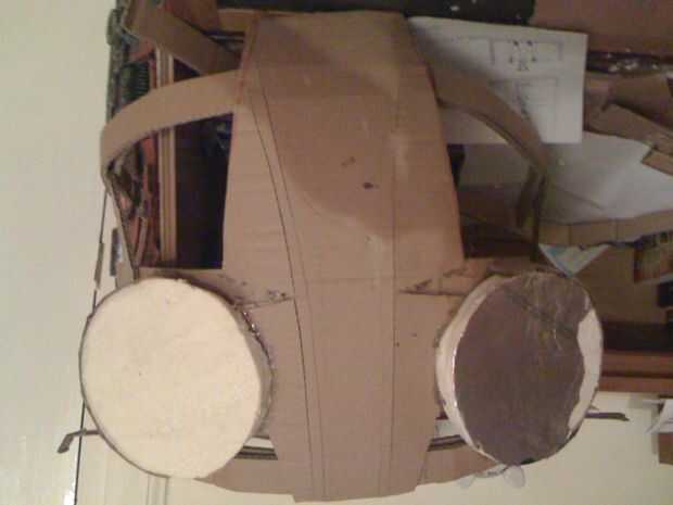 Para obtener un mejor acabado en las secciones delanteras y traseros utilicé pva pegamento y periódico tiras que esto preferí sobre papel maché, ya que da un aspecto más suave también añade una gran cantidad de fuerza y cubierto de lagunas y pequeños agujeros muy bien.