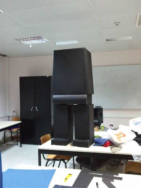 yo y mi amigo hizo estos trajes de hombre de Lego. Elegimos a nuestros personajes favoritos de lego. Era un mago de Lego y estaba un Señor de Lego. Los tres materiales principales son cartulina, cartón y espuma de poliestireno. Primero cortamos el cu