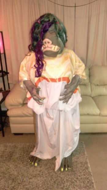 me inspiré por otro traje de Marie Antoinette que vi aquí y en hacer la revista, pero yo quería hacer el vestido extravagante. Visten de mi maridito como arrancaron un bourgeouis pobre con sus ojos, y hemos hecho un par corriendo.Notas sobre la cons