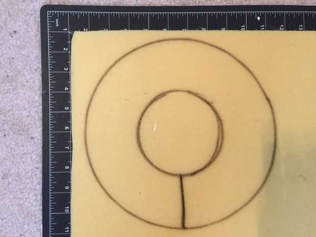 Primero hice una plantilla de papel para comprobar un buen tamaño para el usuario. Usé la plantilla para cortar espuma de 1/2 pulgadas y 2 piezas de tela para cada collar.