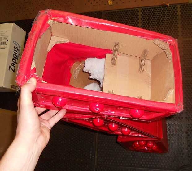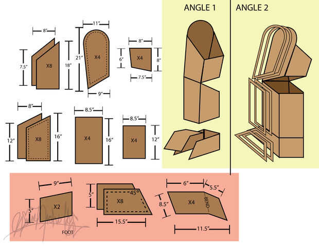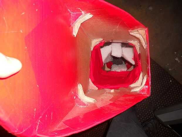 Ayuda: después de cada parte del cuerpo fue creado, cortar y apilar triángulos de cartulina, les pegan (3-4) y pegados en las esquinas de las partes del cuerpo. Si tuviera que volver atrás y cambiar algo, habría hecho estas más gruesas y poner más de ellos en el traje después de tener estos trajes durante un año y fiesta en ellos y tener amigos los usa, que tiene un poco doblado para arriba. Pasé algún tiempo recientemente pegado en cartón más plazas a los pies y soporta más gruesa y pegarles pulg (ver fotos... Mi viejo soportes fueron pintados de rojo y mis nuevos soportes no están pintados).