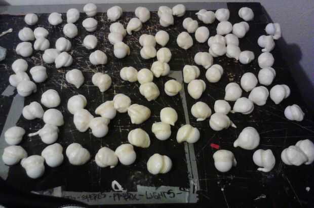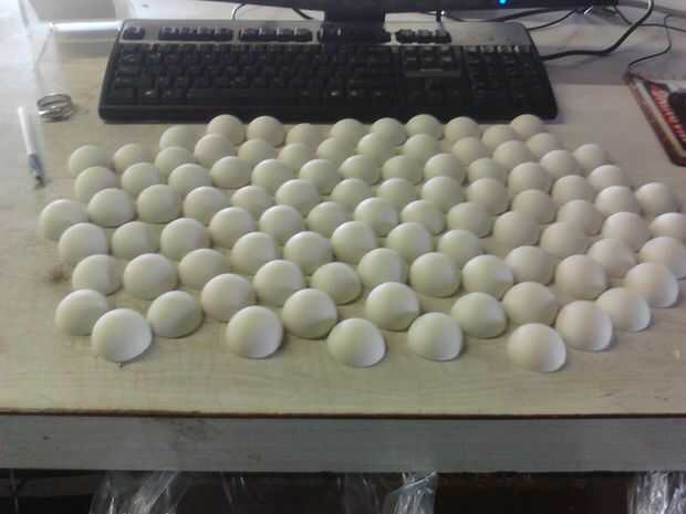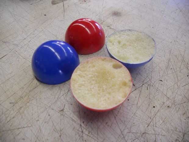 Crear el "perno" pedazos eran difíciles. ¿Se utilizan pelotas de golf? ¿Bolas de Nerf? ¿Super bolas? (sí, precio de todas estas cosas hacia fuera. todo demasiado caro o demasiado pesada) Hmm, ping tal vez pong bolas!... Pero ¿cómo hacerlos robusto y capaz de conectar el traje sin cola, mostrando alrededor de los bordes?... Expansión de espuma!