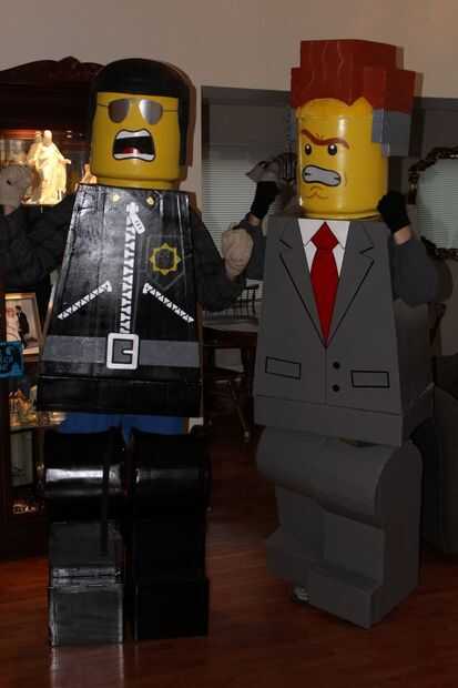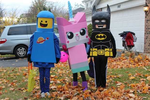Mi hijo quería ser Emmet de LEGO película de Halloween por eso busqué todo el traje a cada minorista pueda imaginar, después de que había quedado sin opciones decidí que intentaría hacer su traje en casa. La cabeza y el cabello son sólo una hoja de e