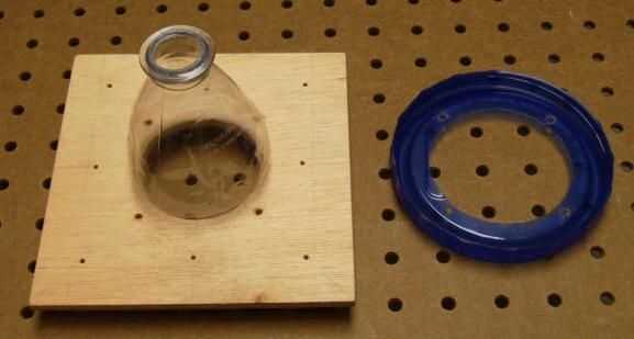 La placa base es un cuadrado de 6 pulgadas de la chatarra de contrachapado marino que es un poco menos de 1/4 de pulgada de espesor. Líneas entre las esquinas opuestas a poner hacia fuera los agujeros. La placa de madera se fija a la estructura de madera, y ambos se dan marcas de partido. Un agujero de 5/32 de pulgada de diámetro es perforado a través de la placa y en el marco en cada esquina para hacer orificios para tornillos largos de 1 pulgada. La placa es liberada de la estructura, y sus orificios de esquina avellanado para los tornillos de drywall. La tapadera se coloca sobre la placa, y sus orificios están marcados en la placa. Una marca de partido se hace en la placa de cerca el orificio del tornillo marcado en la tapa, a continuación, se taladran agujeros 1/8-pulgada diámetro a través de la placa. Se perforan cuatro agujeros de drenaje de 3/32 de pulgada de diámetro a través de la placa, tal que la estructura de madera ni la tapadera se bloquea. Marque y corte el agujero del centro de la placa 1 y radio 3/16 de pulgada, lije.