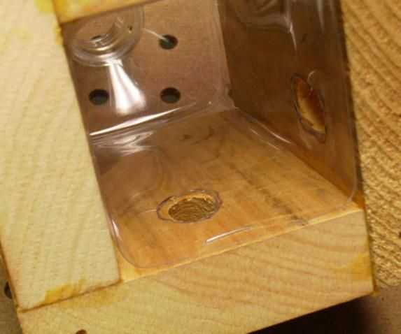 Coloque la tapa en el borde de la "top" de la caja mediante cuatro tornillos. No use pegamento, en caso de que la tapa tiene que cambiarse en el futuro con el fin de sustituir la botella de Fiji.
