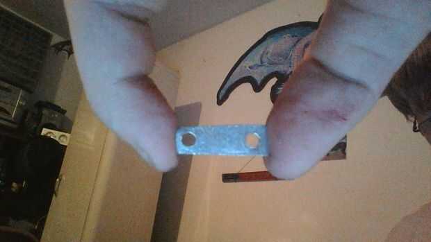 usaba chapa de aluminio de 1/8" para mi gatillo pero el acero es más fácil de encontrar en la mayoría de las ferreterías.Paso 1: Hacer algo que se ve así. Trate de copiar la geometría. Desea la bisagra al estar cerca en línea a la muesca del diente e