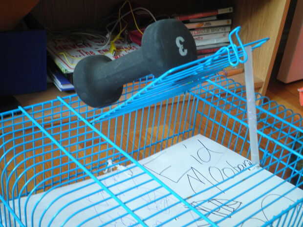 esta es una imagen de lo que usted estará haciendoPaso 1: El cuerpo Paso 2: manejar this is the handle to hold the cage by.Paso 3: puerta esta es la puerta de corredera que atrapa a los animales.Paso 4: Este es el cebo de la ardilla até una nuez en e