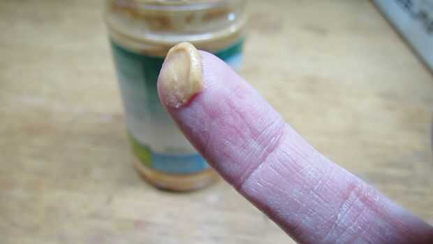 Es mejor usar mantequilla de maní. Sólo un poquito en la punta de su dedo es todo lo que necesitas. Poner en la parte superior del interior de la botella en la medida en que se puede llegar con el dedo.