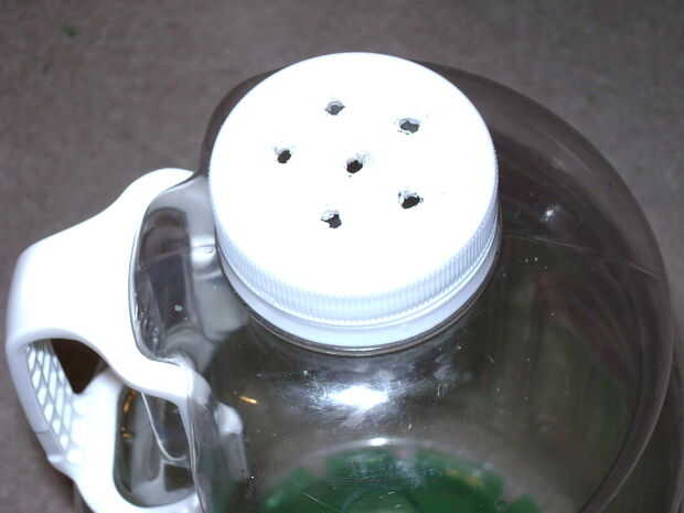 Me calienta la cabeza de un destornillador muy pequeño y había derretido unos agujeros en la tapa también. Necesito poner unos agujeros adicionales en el cuerpo de la trampa (para permitir que se hunda rápidamente). Entonces me voy tirar algunas piedras de lastre, añadir cebo (migas de comida y galletas de perro) y alguna línea de nylon atada a la manija y es listo para ir! Voy a tratar de actualizar este instructible una vez lo he usado un poco, para ver si funciona mejor que el modelo 'estándar'. Espero que usted encuentra este interesante!