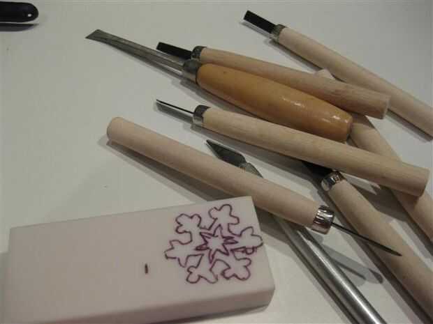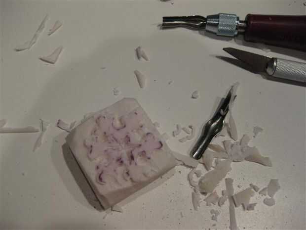 He utilizado mis herramientas de tallar para quitar el fondo, el copo de nieve debe estar orgullosos de recibir la tinta.