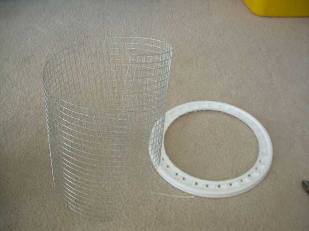 Corte la tela del hardware según el tamaño de la abertura de la tapa. Un poco de matemáticas será muy útil aquí. Mida el diámetro del agujero, el mío es de 9,5 pulgadas. Calcular la circunferencia del agujero con pi! La circunferencia es igual a diámetro * π. En este caso 9.5"(diámetro) * π (3.14) = 29,85". Esta será la longitud de la tela metálica y está bien para completar hasta el más cercano. 5"(o. 25" Si su paño 1/4"). Mi corto en 30".