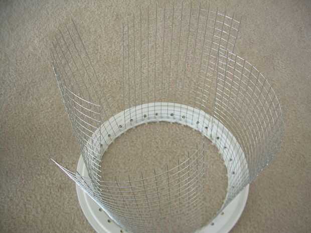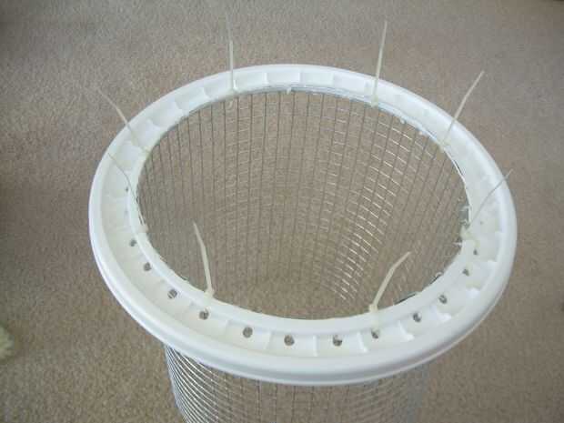 Enrollar la pieza y conectar una sección con ataduras de cremallera. Luego fije la pieza completa a la tapa, otra vez con ataduras de cremallera. Usé un total de 30 lazos zip alrededor de la tapa. Esto puede ser por muerte, pero fue tan fácil y rápido pensé ¿por qué no?