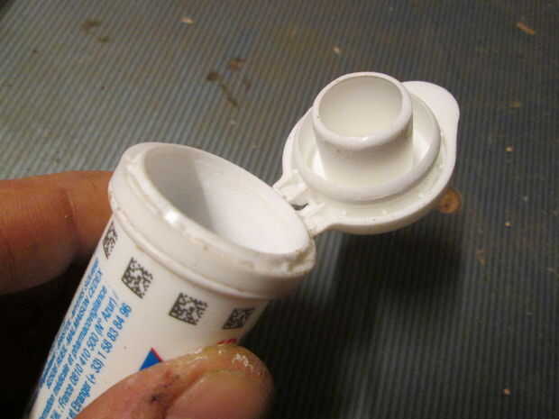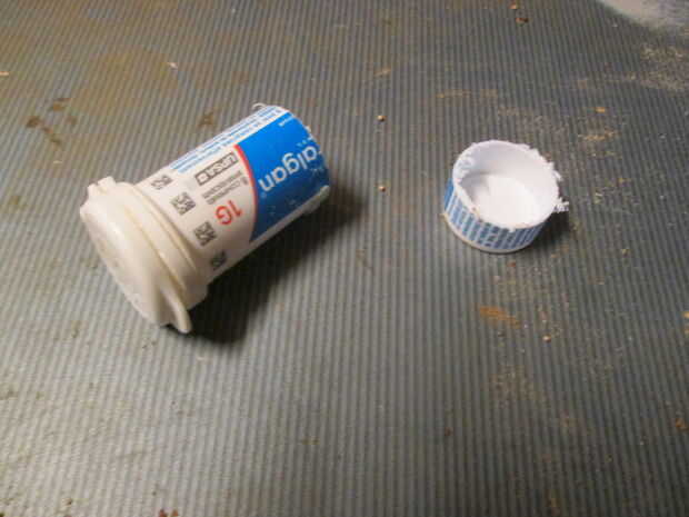 Las cosas que mantener las pastillas secas y cortar 1/3 de la longitud de la salida. Utilice un cinta para Atorníllelo firmemente en el extremo de la tuerca.