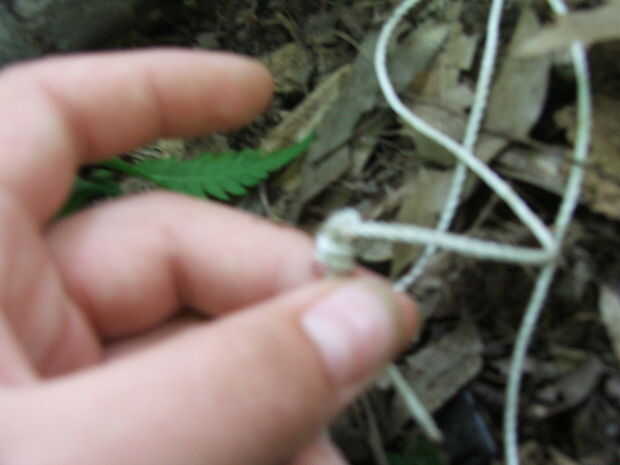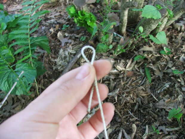 Atar el lazo al palo con la cuerda en la muesca para mantener en su lugar.