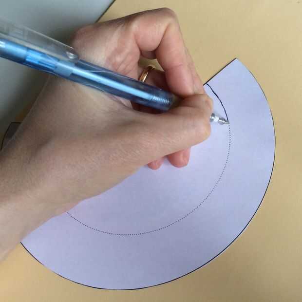 Recorte la plantilla sobre las líneas negras, a continuación, marcar la línea de doblez dibujando firmemente a lo largo de la línea de puntos con un bolígrafo (sugerencia: un suave fieltro punta no ayuda...).