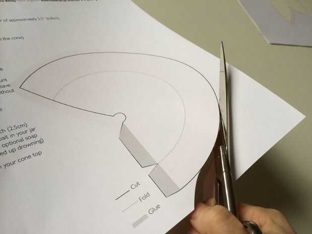 Doble cono pellizcando la plantilla a lo largo de la línea anotada.