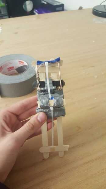 El montaje de este proyecto es relativamente simple y abierta a interpretación. Para los míos, corte la parte superior de trampas para ratones que podría escalonar a lo que no se mueve de la parte posterior de la garra, idealmente dándole un poco más grande "mordida".