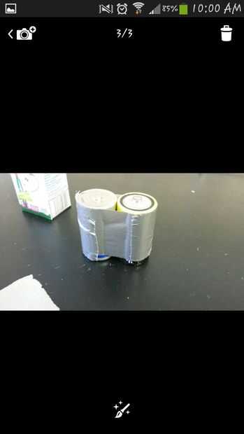 Conducto cinta dos baterías. Luego realizar dos redes con dos tiras de cinta. (Cinta juntos las partes pegajosas de las tiras más largas y más cortas).