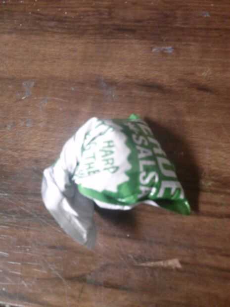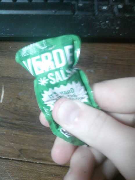 Hay dos métodos de trabajo que he encontrado. Uno es el apretón de la salsa a un extremo de la bolsa, entonces gire el lado vacío hasta que la salsa quede comprimido a casi reventar. La otra es simplemente gire la bolsa en medio hasta que casi estalla. Ambos son igualmente desordenados al pisarla.