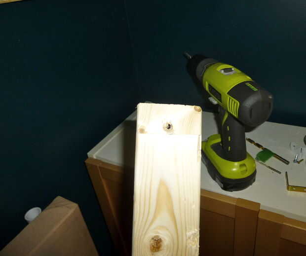 Perfore a través del soporte y en la pared, uno en cada extremo. Este bit es un poco complicado, ya que tiene que pasar por el soporte en ángulo, pero directamente en la pared. Tuve que derrota los orificios en el soporte hacia fuera un poco así que encajaría en el tornillo.