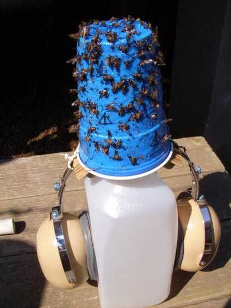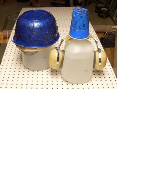 Usar uno de estos siempre trabajo fuera, y atraer y sostener cualquier moscas ciervos vienen a me muerda. La alta costura ha añadido es sólo un bono. Moscas de venado son atraídas a cualquier objeto grande, oscuro, caliente, móvil (bono, emanaciones de dióxido de carbono) y el mejor señuelo que tengo disponible es yo mismo. Cuando patrullan el perímetro de mis muchas mañanas y recoger basura a lo largo de nuestras carreteras aledañas, llevo la ensalada ($1). Es perforado en dos lugares y atado por dos ataduras de cremallera de plástico a un casco plástico que ha tenido su corona de corte. Los restos de los cascos y su cinta mantenga el recipiente en mi cabeza.