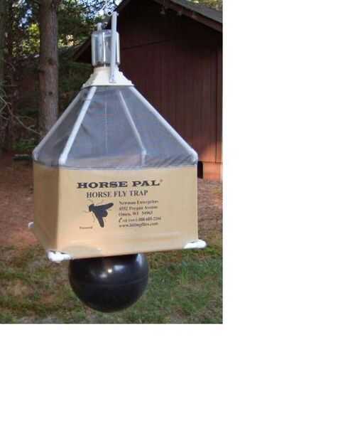 Esta trampa es una versión comercial de la trampa de Manitoba, que puede ser vista y comprada en el sitio web de bitingflies.com. Está destinado a tábanos, pero compré uno y encontrado que es bastante eficaz contra moscas de venado. Sin químicos, sin venenos, pero muy caro. El señuelo es una grande, resistente inflable bola negra ($50), que es calentada por el sol. Al parecer la mosca hembra piensa que va a llegar a morder un caballo muy grande. Una vez que ella no encuentra la harina de sangre necesita para poner sus huevos, ella se escapa hacia arriba, se canaliza en un frasco de plástico transparente, donde ella muere por desecación (es decir, sequen con perjuicio extremo). He utilizado esta trampa para probar Señuelos más baratos de mi propio diseño para el uso con trampas pegajosas.