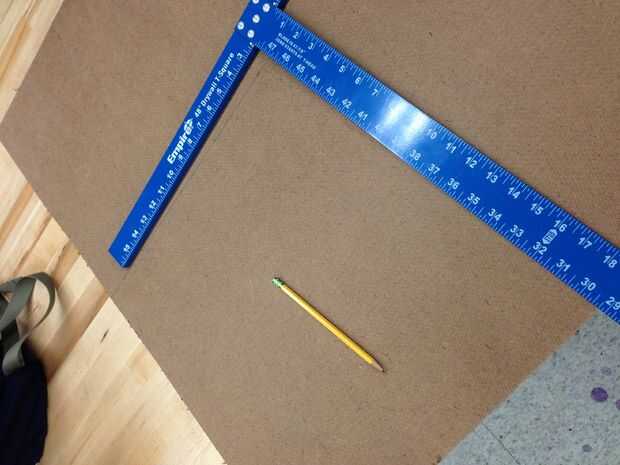 Uso cinta de medir para medir una de las piezas de madera 1.5ftx1.5ft.