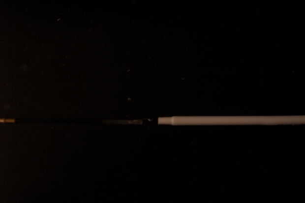 Doblar la grapa un poco, sólo lo suficiente para su elástico. Empujar en el cañón, y usted comenzará a ver su grapa a través de la línea que se corta.