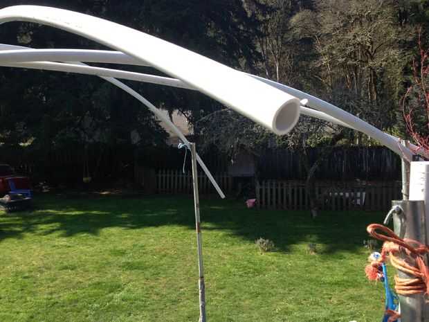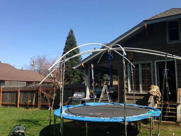 Este proyecto muestra cómo construir un techo impermeable para su trampolín. Lo siento pero no tengo una foto de ella completa y las fotos que tengo son cuando fui desarmarla. Al final este proyecto de fin de semana añade una tapa impermeable a su vagabundo y hace un frío fuerte/tienda/vagabundo.