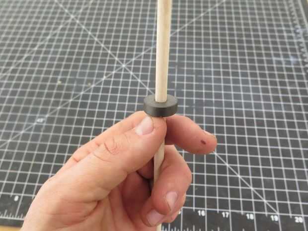 Primera es encontrar un taco que trabaja con sus imanes. Comprobar el diámetro de uno donde los imanes puede deslizarse fácilmente pero lo contrario es bastante cómodo. Corte una longitud de unos 8-12".