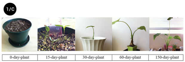 Cuadro 1C - el crecimiento de la planta en 150 días