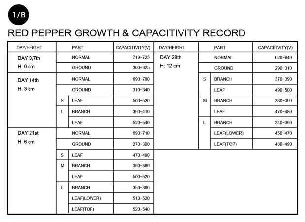 Cuadro 1/E - la relación entre la detección del gesto y el crecimiento de la planta