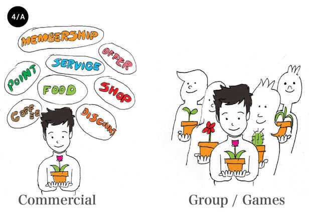 Fácilmente podemos imaginar numerosas áreas de oportunidad. Por ejemplo, según el resultado de mi trabajo de campo, la gente consigue relajado haciendo compras, para que en el contexto comercial podemos desarrollar planta Plus junto con dar recompensas o ideas de último minuto en, y también personas llegan relajadas por actividades con amigos, por lo tanto, en el contexto del grupo, podemos imaginar muchos divertidos escenarios de juego como entre amigos, colegas y medios de comunicación social. (Cuadro 4/A)