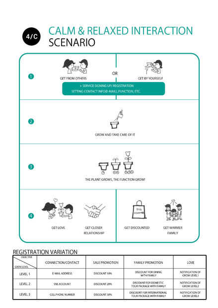 Cuadro 4/B y 4C/describen sobre mi idea de hacer la planta más como un pequeño dispositivo de sensor y simplemente ponerlo en el suelo de la planta. El dispositivo transmite los datos al servidor de web en línea. En este caso, el usuario puede seleccionar sus recompensas más del cultivo de la planta de registro en el sitio Web. Por ejemplo, si los usuarios registran "Venta y descuento" en la página web, más crecen la planta de arriba, más descuento y promoción se obtienen de las partes interesadas (tales como una tienda por menor).
