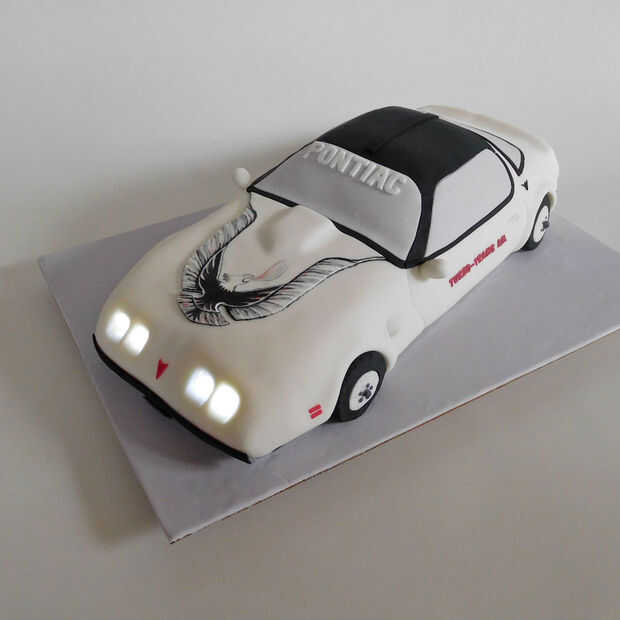 Desafíos de pastel son mi favorito cuando un cliente pide un escultural Trans Am Cake tuve que sugieren que incluir faros LED de trabajo. Yo normalmente sólo hacen pasteles en niveles pero esta torta fue para un coleccionista de coches que posee el 64 anual Indy 500 pace car, así que tuve que llevarlo a otro nivel. :) Para ver más de mis tortas visite mi Galería.